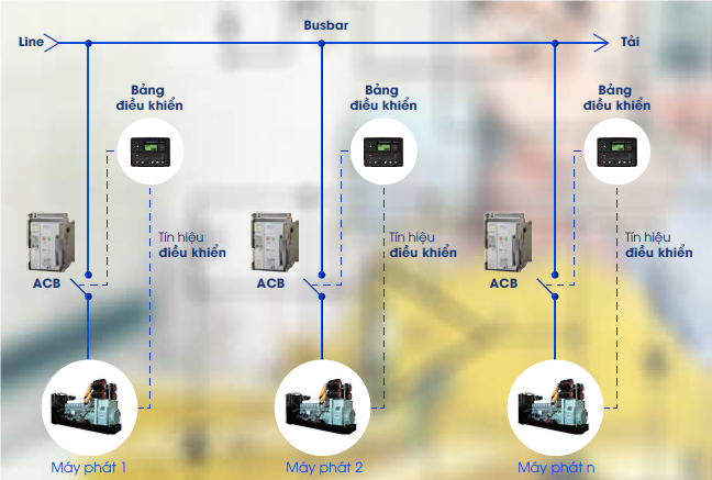 Hệ thống bao gồm: Bộ điều khiển DeepSea/DEIF.. , bộ điều tốc (Speed Controller), bộ AVR (tự động điều chỉnh điện áp) và hệ thống PLC (bộ điều khiển lập trình)